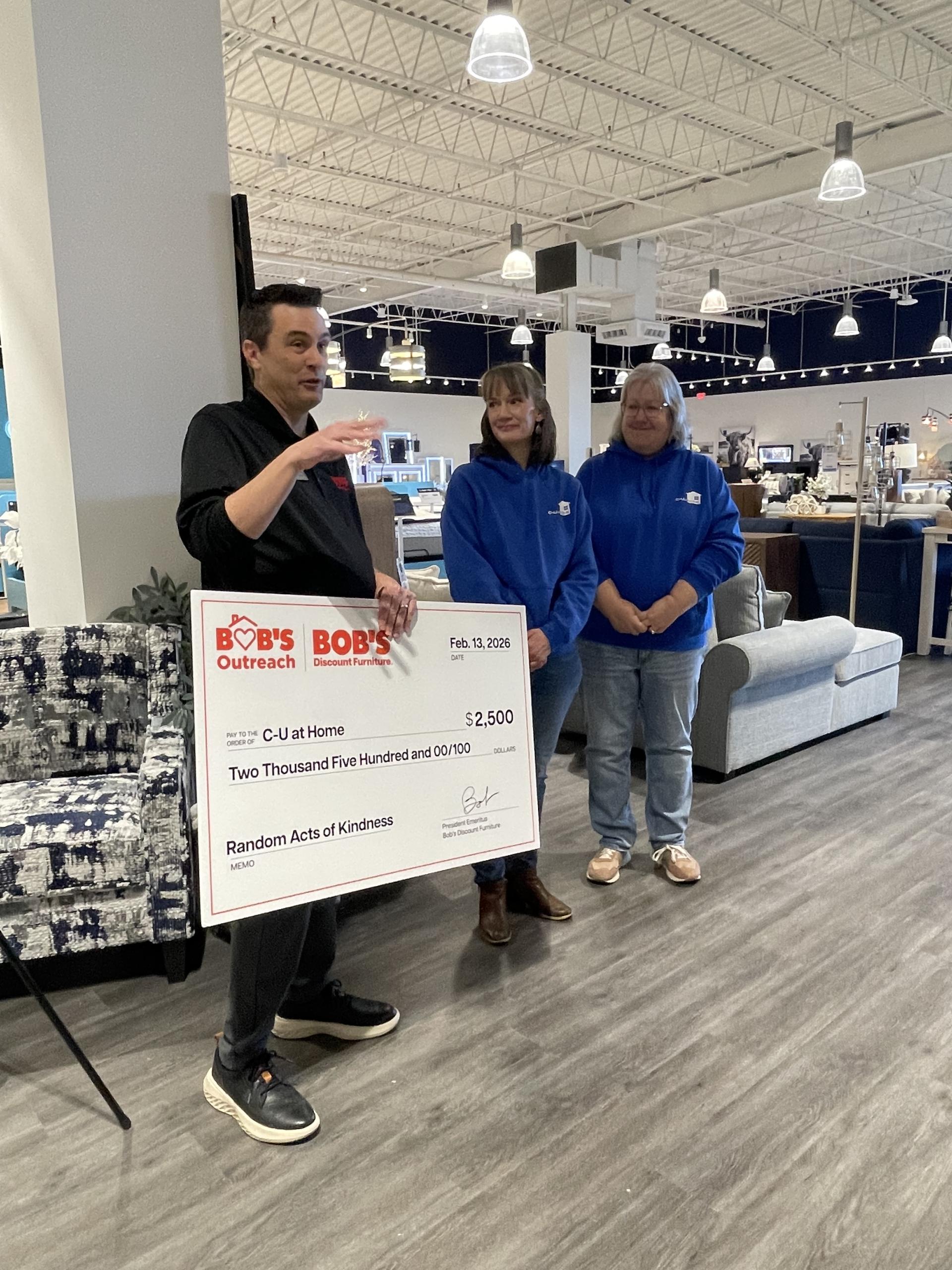 Clouse also highlighted the company’s commitment to community giving. As part of its opening celebration, the store donated $2,500 to C-U at Home and $2,500 to Bottenfield Elementary School, where Principal Kendra Bonam and C-U at Home Executive Director Melissa Courtwright accepted the checks.